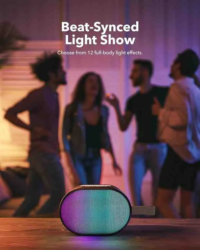 Turn any space into a mini-concert with the integrated RGB LEDs. The speaker features 5 LED beads that power a full-screen light show. You can cycle through 12 preset lighting effects that react in real-time to the rhythm of your music, adding a mesmerizing visual layer to your audio experience.