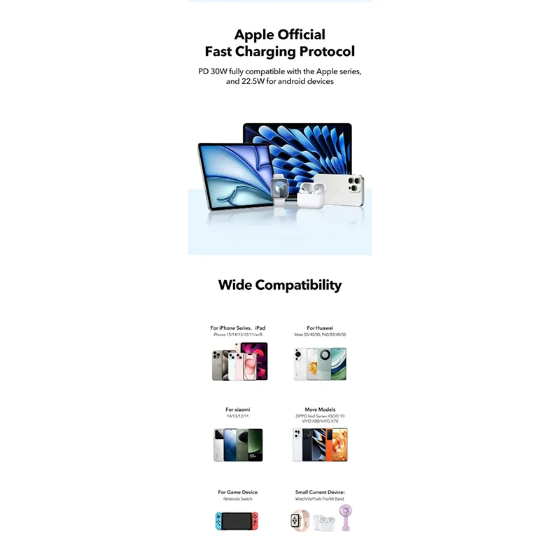 ✔ Fast 30W PD charging