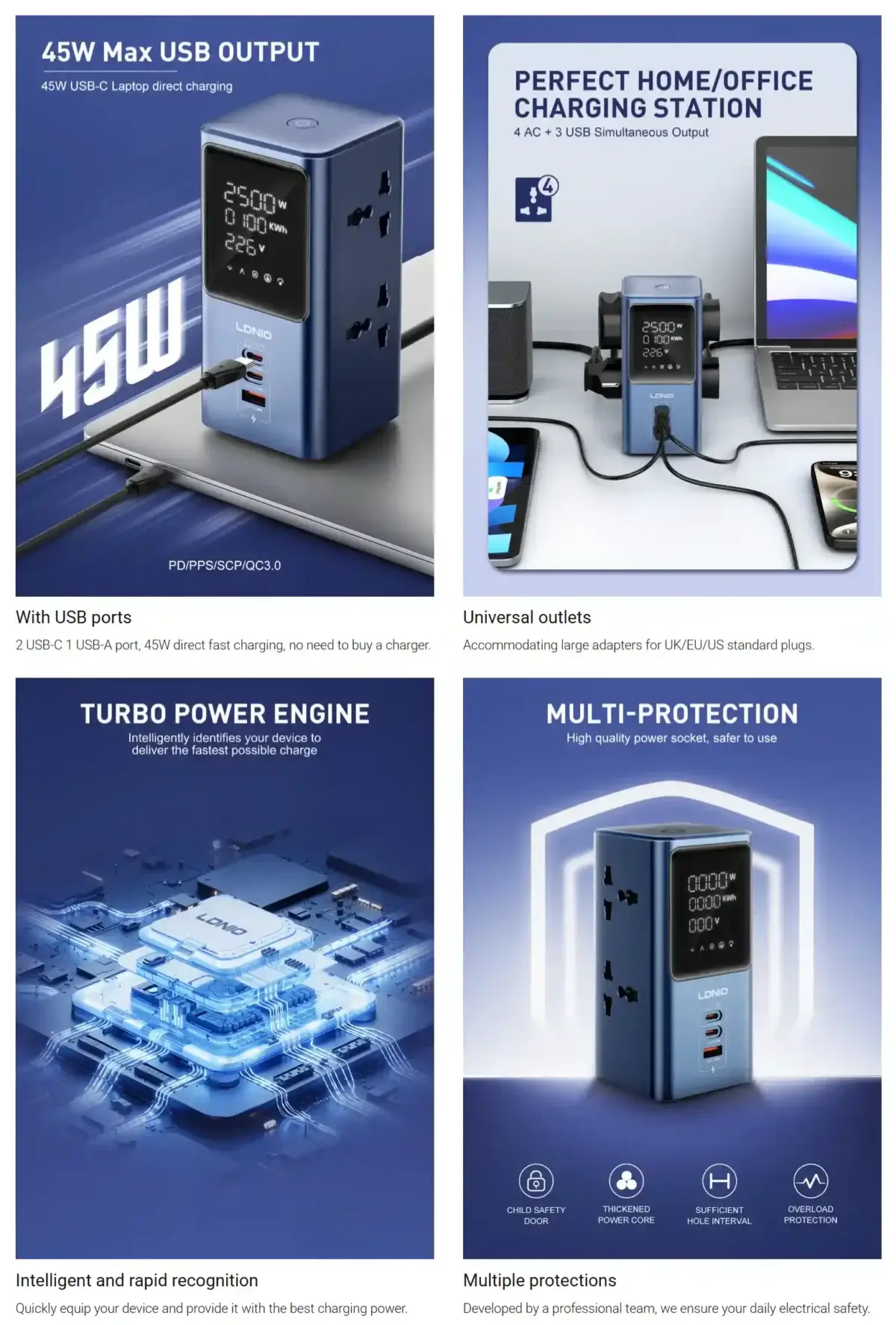 LDNIO SC2 45W PD charger: The Ultimate Universal Power Strip with LED